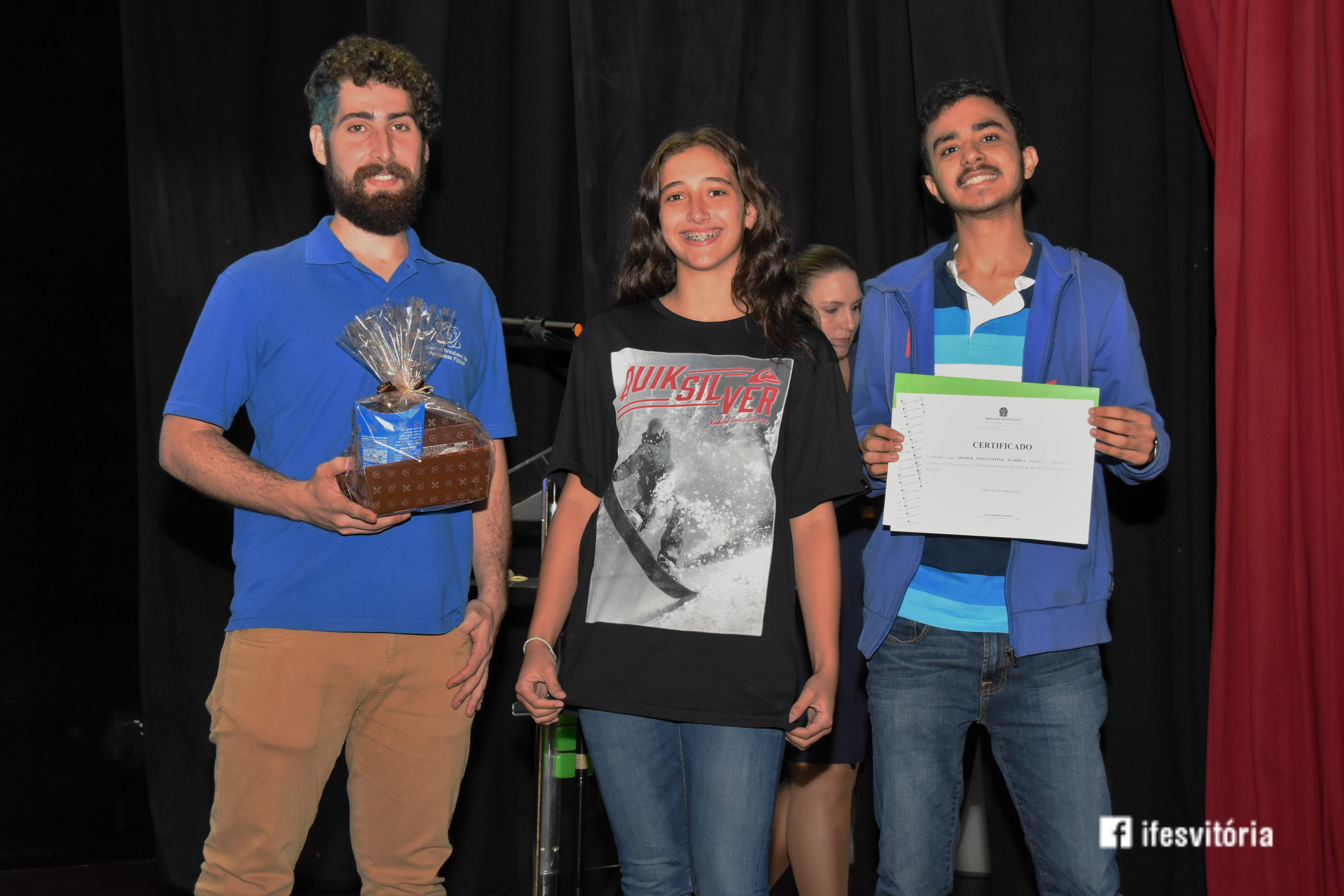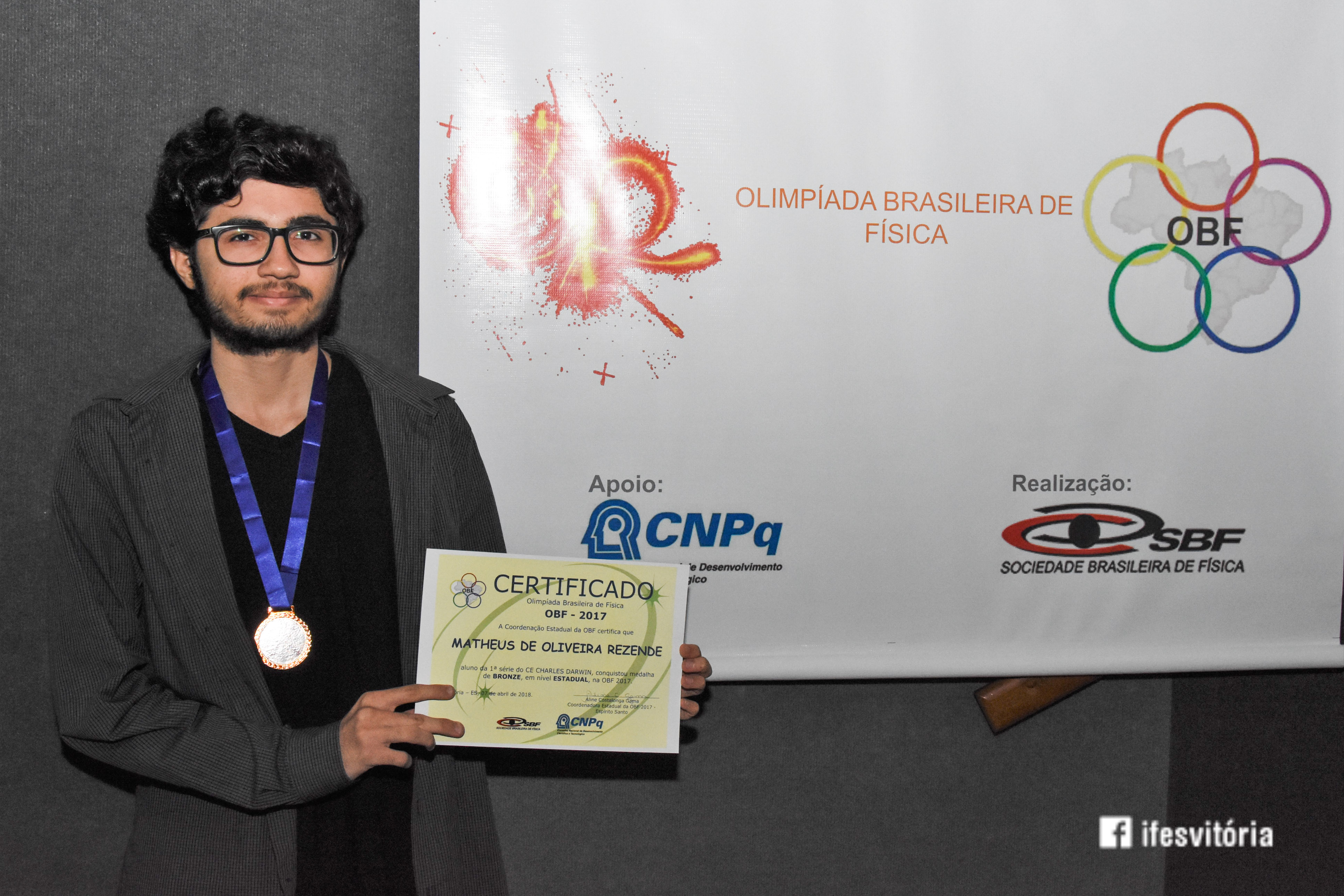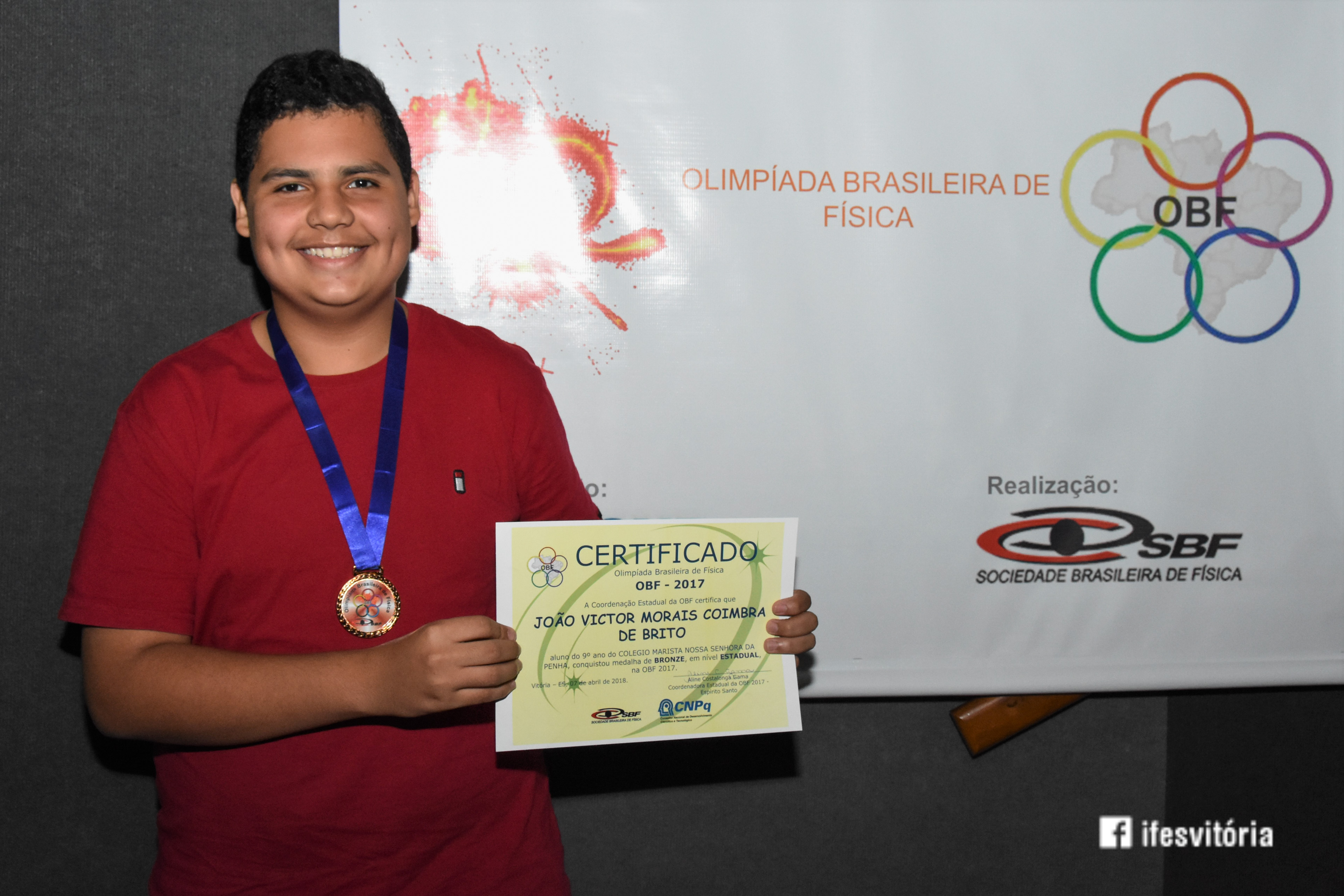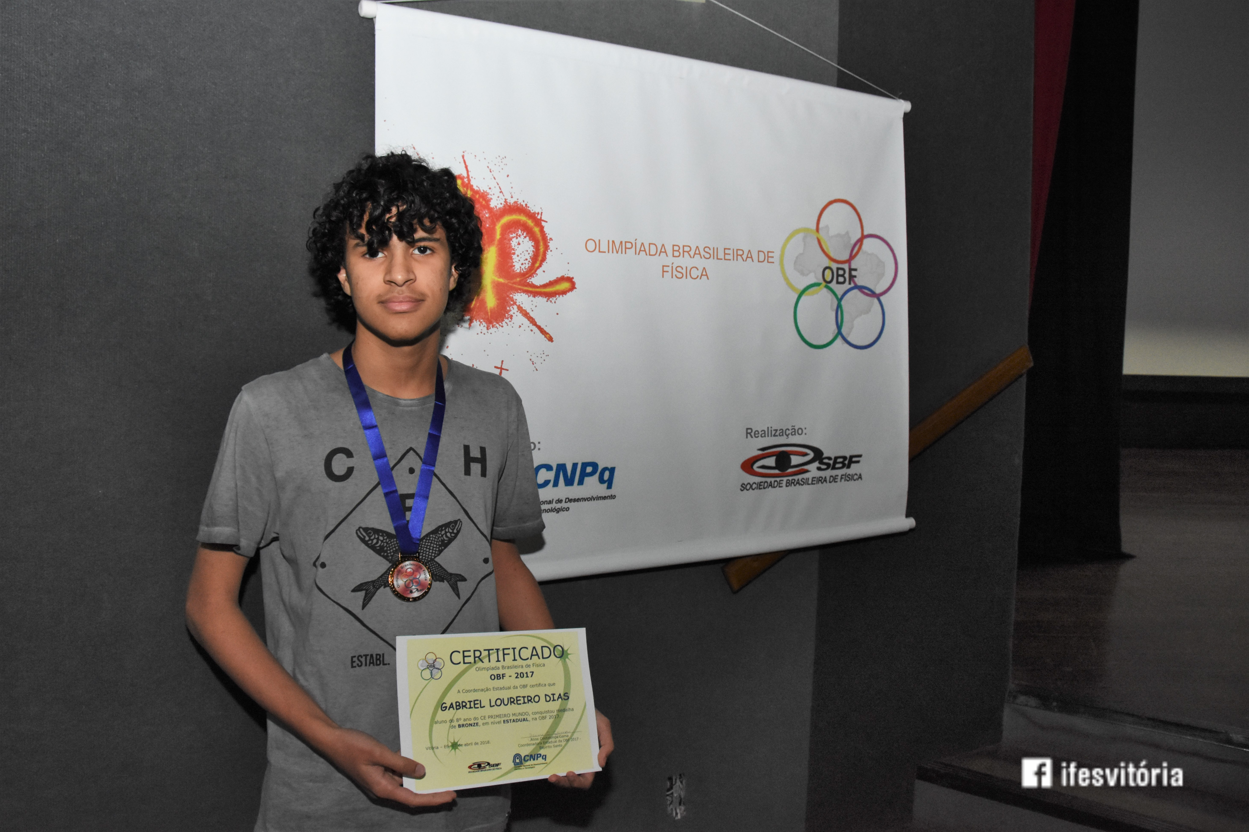 Neste sábado (7), foi realizada a premiação da Olimpíada Brasileira de Física (OBF) 2018, no Teatro do Campus Vitória. A premiação reuniu estudantes, pais, servidores e representares de instituições privadas. A palestra do evento foi realizada pelo ex-aluno do Campus Vitória, Arthur Constatino Scárdua, que falou sobre Ondas Gravitacionais. Arthur é doutorando no Centro Brasileiro de Pesquisas Físicas.