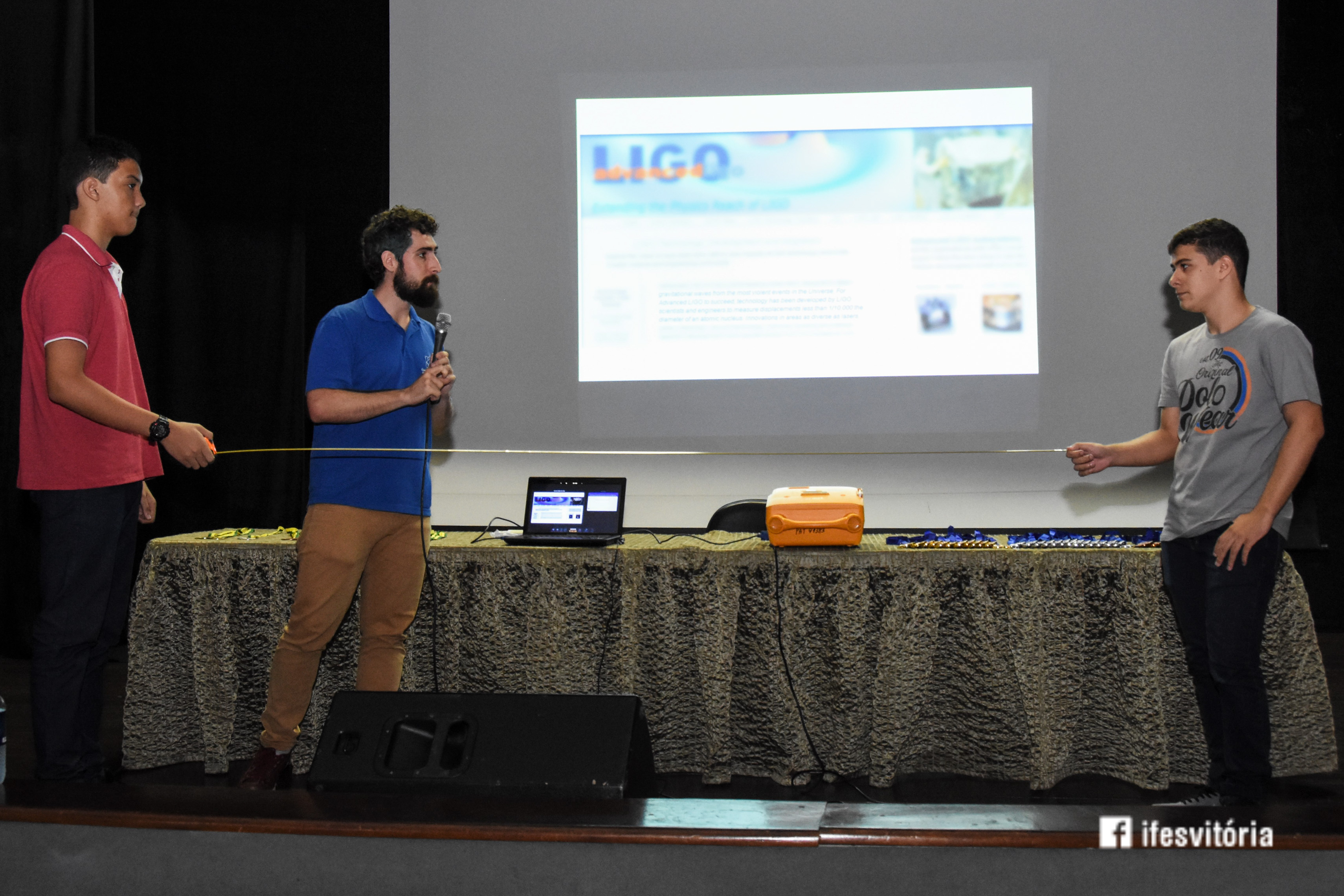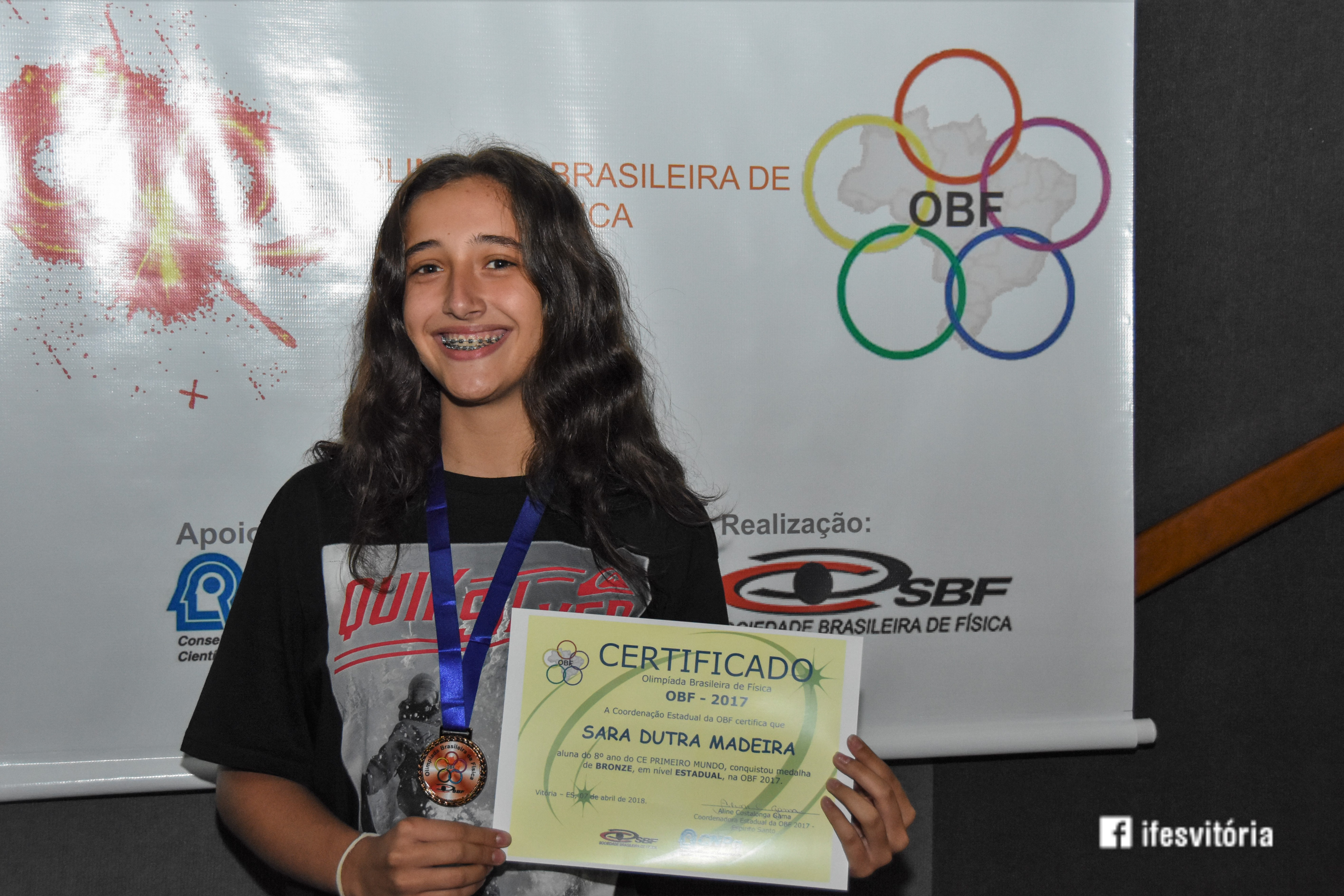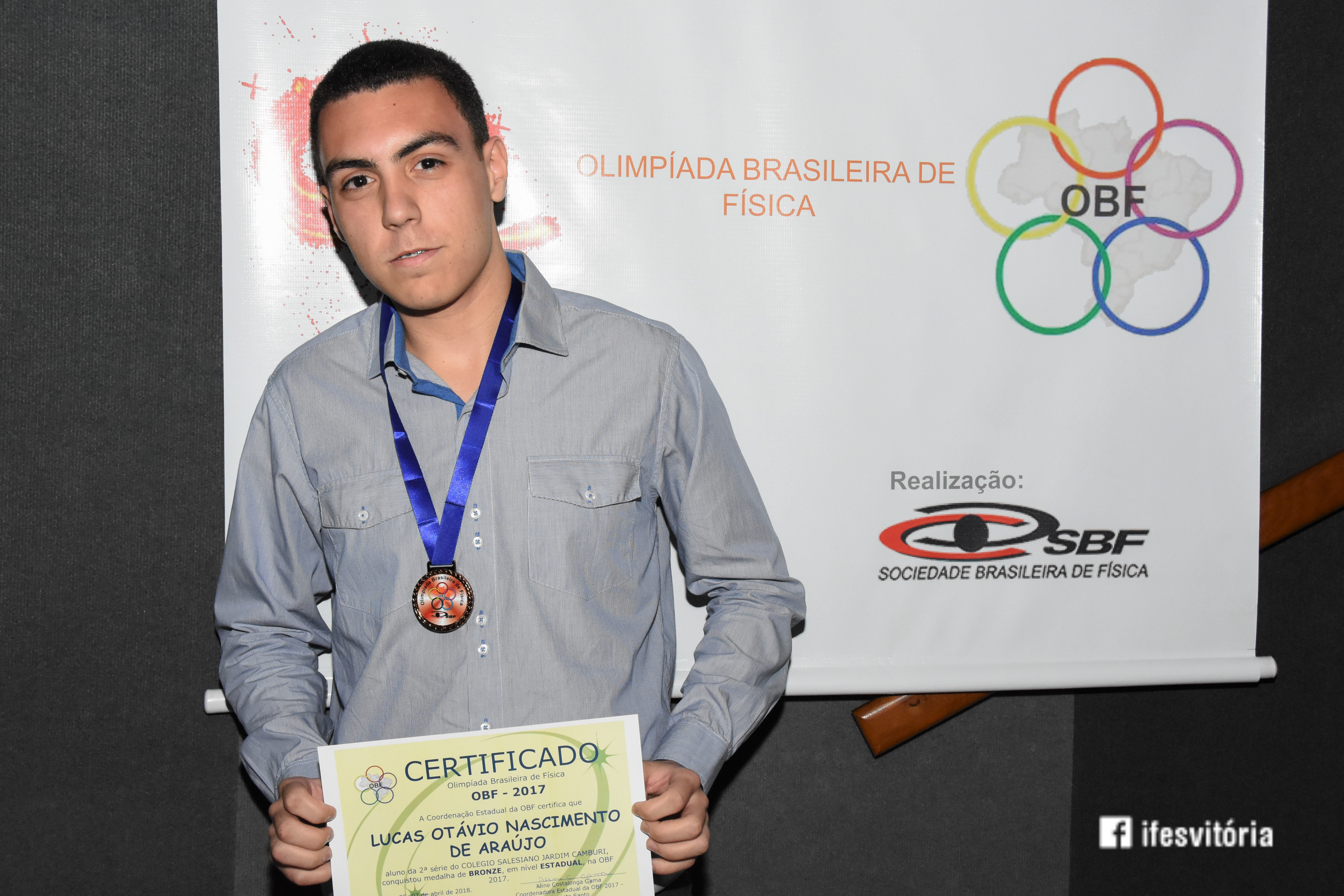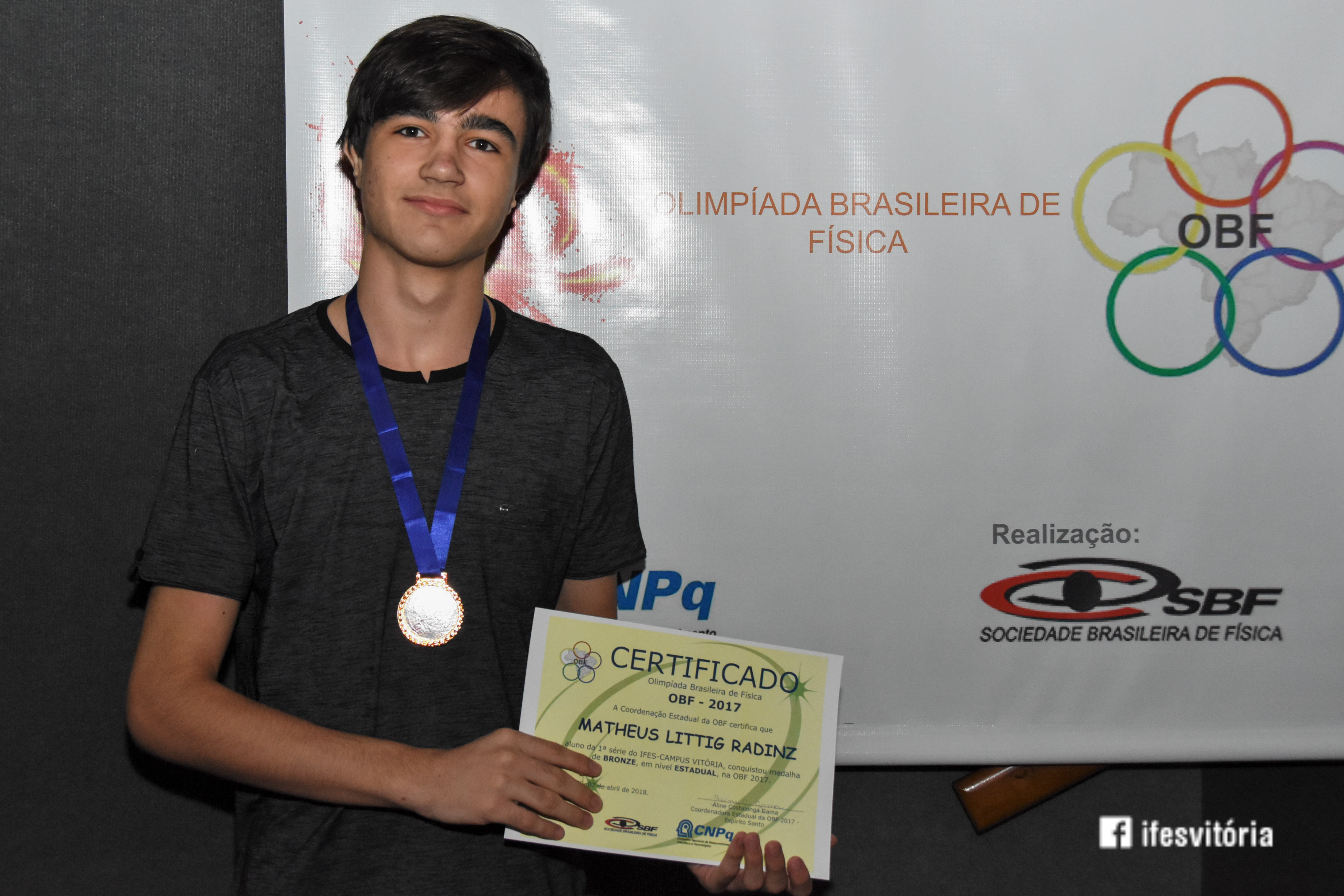Neste sábado (7), foi realizada a premiação da Olimpíada Brasileira de Física (OBF) 2018, no Teatro do Campus Vitória. A premiação reuniu estudantes, pais, servidores e representares de instituições privadas. A palestra do evento foi realizada pelo ex-aluno do Campus Vitória, Arthur Constatino Scárdua, que falou sobre Ondas Gravitacionais. Arthur é doutorando no Centro Brasileiro de Pesquisas Físicas.