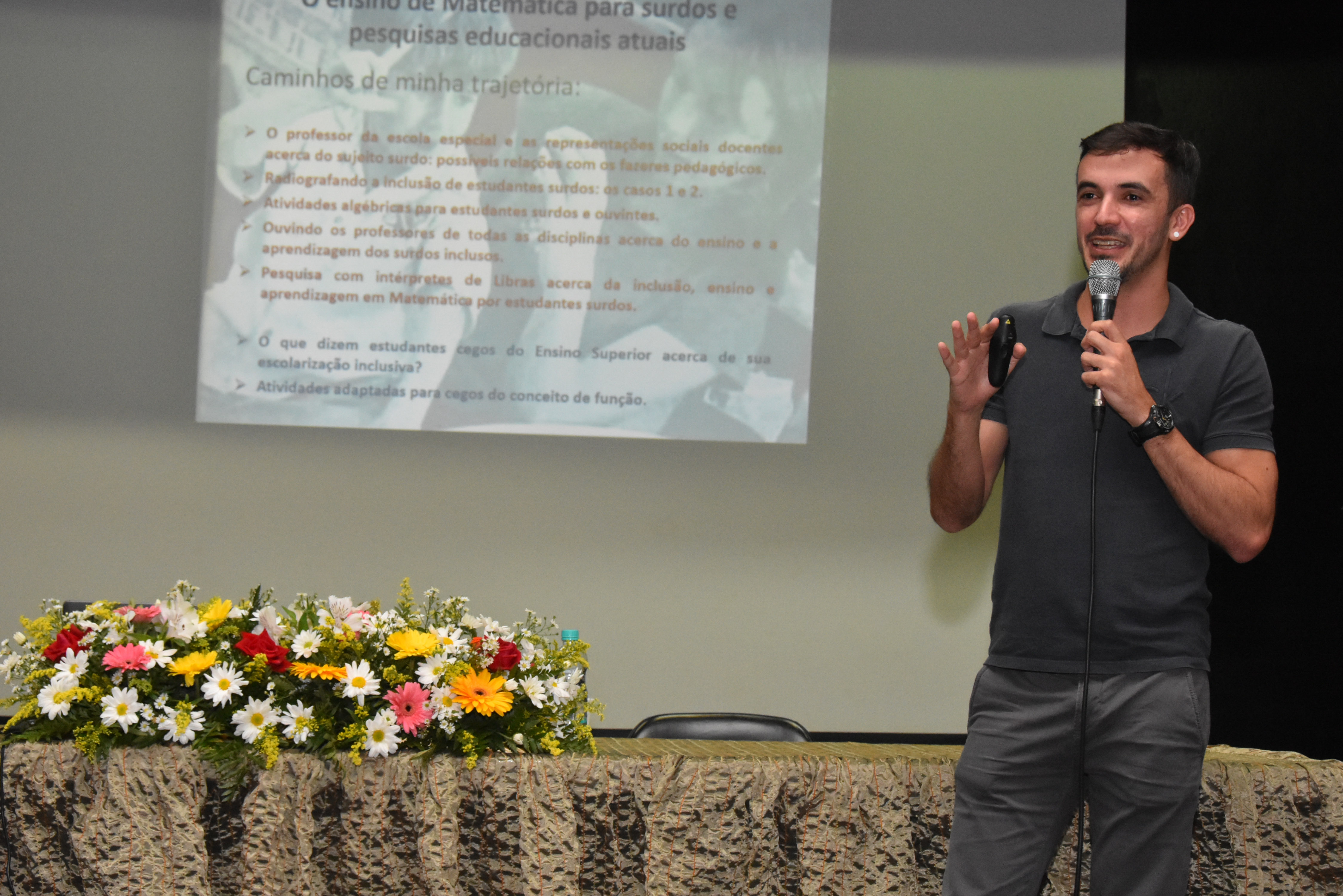 Com o tema “Matemática e questões sociais”, a 8ª Semana da Matemática (Semat) do Campus Vitória foi realizada entre os dias 29 e 31 de maio. As mesas-redondas e rodas de conversa aconteceram na quinta (30) e na sexta-feira (31), que também foi dia do encerramento da Semana com a palestra Saber Matemático, realizada pelo Intérprete de Libras, Fábio Alexandre Borges, da Unespar.