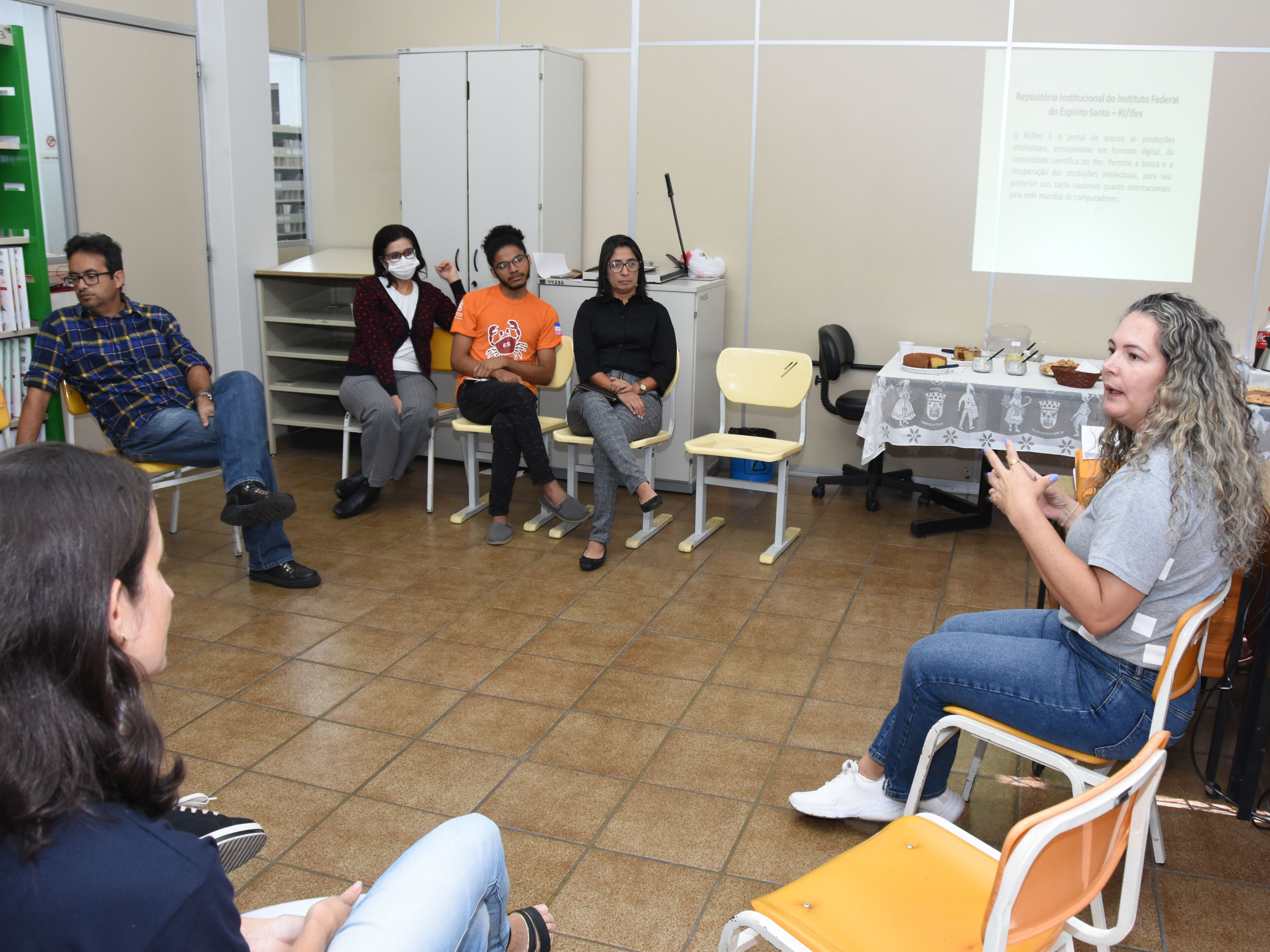 Roda de conversa sobre repositório institucional, realizada na biblioteca em 20 de maio.